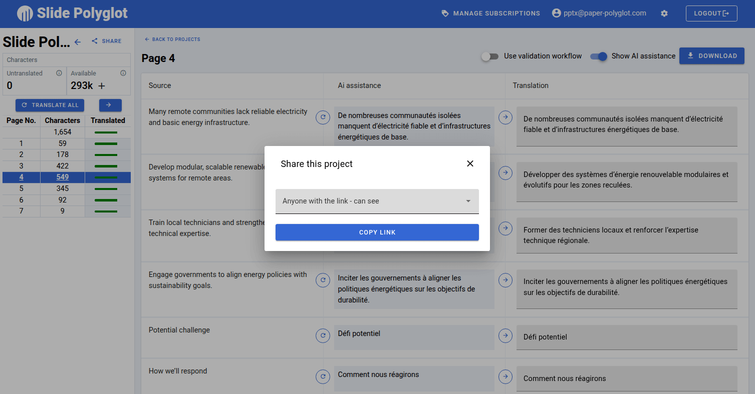 You designed a presentation with many text boxes and now you need to get those text boxes translated/edited, but it's not easy to extract them or to send the files. With our PowerPoint and Google Slides translator, you can do all of that, everything is online.